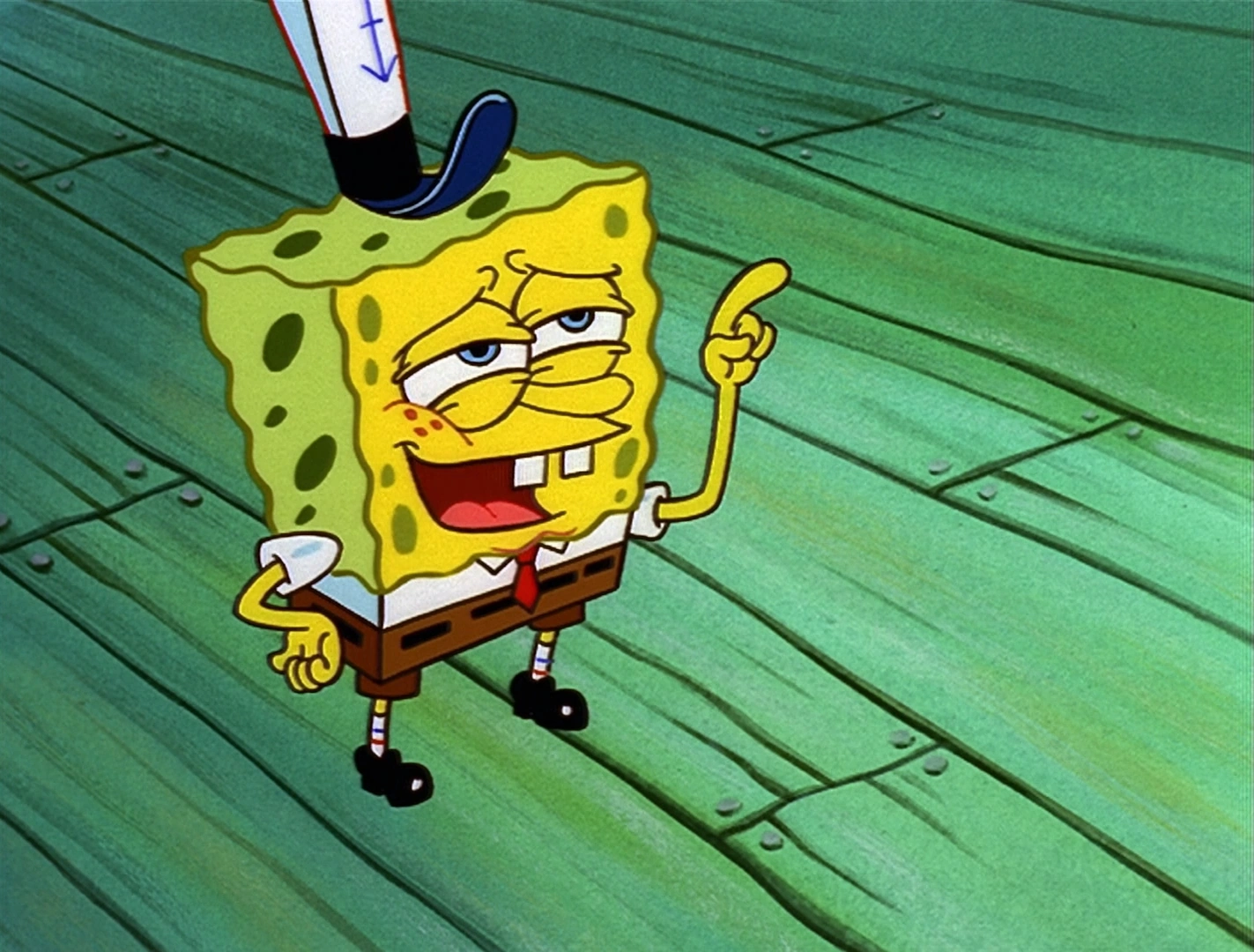 Released in 2002 on windows, it's still available and playable with some none of the while character colors are working i can see through spongebob's eyes teeth shirt, as well as other characters. Spongebob is stuck in a brick wall and squidward runs by laughing. Spongebob is always the best employee ever but squidward decides that he wants the employee of the month award for a change. But many unexpected things happen along the way.