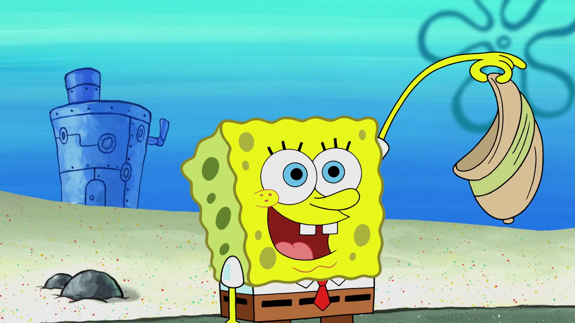 That said fact aside, midway through today's lunch rush, we ran out of the secret ingredient mr. Spongebob's foghorn alarm clock rings, waking him up in the morning. He tells his pet, gary the snail, that he must be in good shape because this particular day is very important.